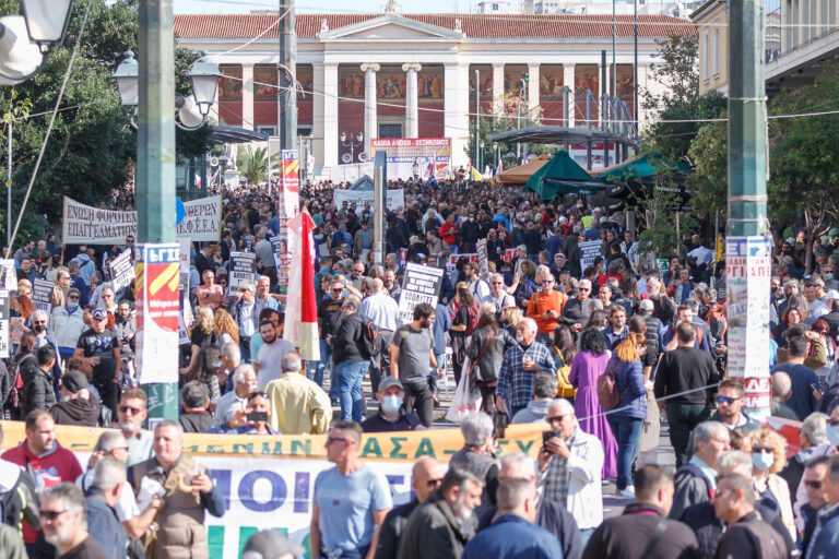 Απεργιακή κινητοποίηση09/11/2022“Τους βλέπουμε μεγάλους γιατί είμαστε σκυφτοί.Σηκώστε το κεφάλι να φοβηθούν αυτοί”Από τη σημερινή, εντυπωσιακά μαζική, απεργιακή διαδήλωση.Το μήνυμα είναι σαφές: Όρθια κοινωνία, ζωντανή οικονομία!